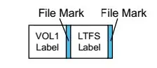 The Label Construct consists of an ANSI Vol1 label , followed by a file mark, followed by one record in LTFS label format, and followed by a single file mark. Each Label Construct for an LTFS volume must contain identical information except for location field of the LTFS label.