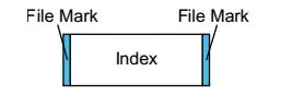 The figure below shows the structure of an Index Construct. An Index Construct consists of a file mark, followed by an Index, followed by a file mark. An Index consists of a record that follows the same rules as a Data Extent, but it does not contain file data.