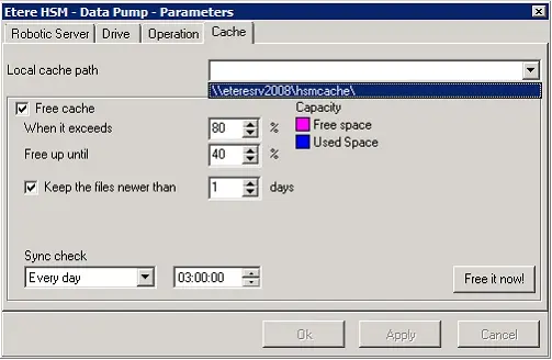 •Using the 'HSM cache' property of the Etere PC where Etere Data Pump is installed: