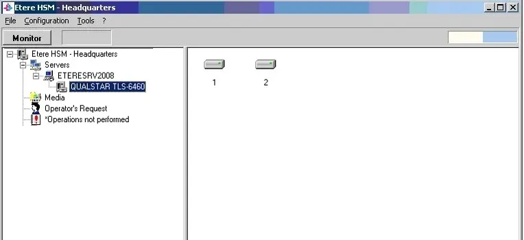 2.If Etere HSM - Robotics Control is running the selected server, it will be shown the library and the drives installed (see the Servers chapter for detailed information):