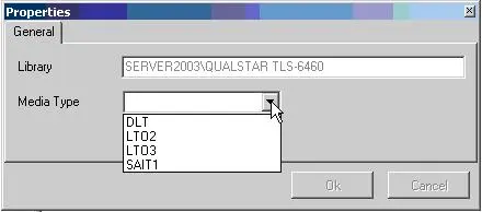 3.It is possible to specify (if Etere HSM - Robotics Control is running), the Properties window of the connected library. Specify the tape type of the library (Media Type):