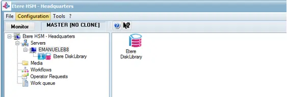 1. Launch HSM Headquarters from the monitor console right right-click Server in the Headquarters tree select “Add,” and select “Etere Disk Library” from the list.