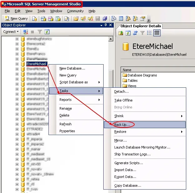 1.Launch the SQL Server Enterprise Manager, connect to the server and choose the database for which the backup will be created: