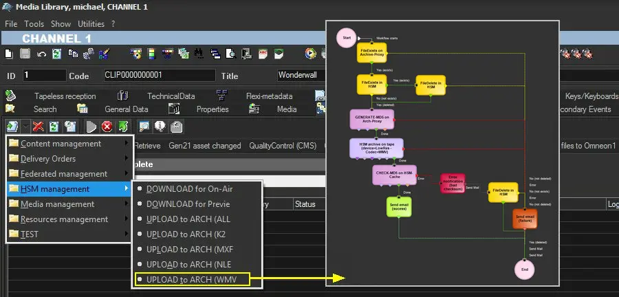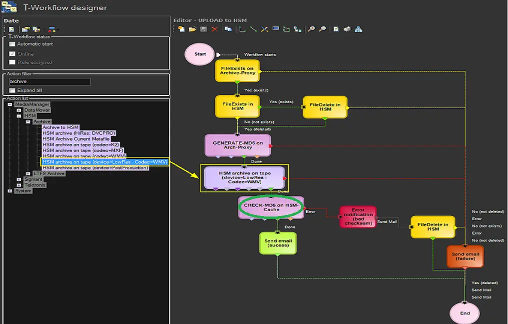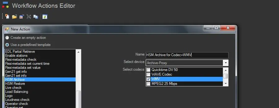 1. In Etere Configuration > Configuration Editor > T-Workflow > Actions create either a template-based on the HSM-related actions: