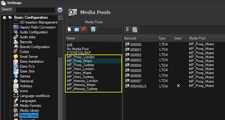 5. Etere HSM Robotics will archive the requested asset into the media pools corresponding to what set in the Etere Configuration > Settings > Types Editor > Types > HSM section: