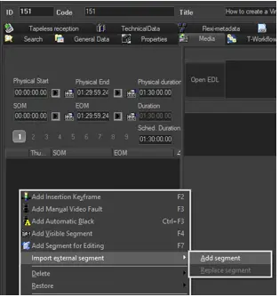 1. In Etere Configuration > Configuration Editor > T-Workflow > Actions create either a template-based on the HSM-related actions: