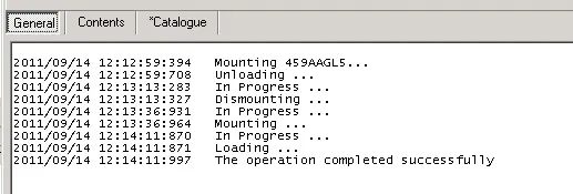 Under the "General" tab are written all logs related to the operations launched from the "Local device" (i.e. load, unload) and "Library Drive" (i.e. mount) menus:General tab