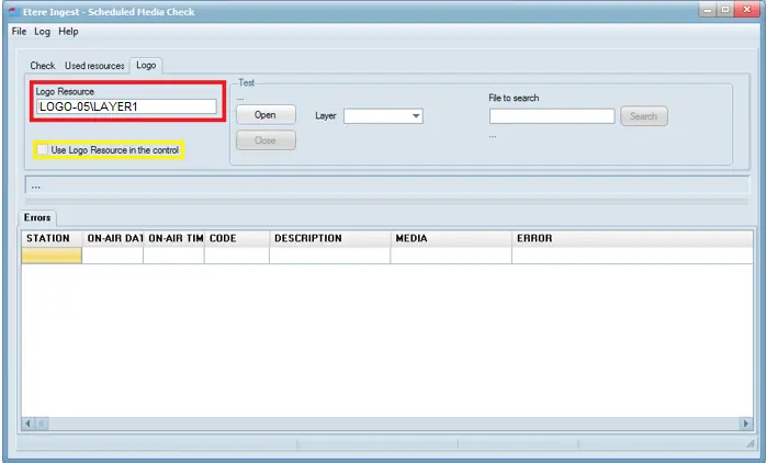 NB: In Automation Control, it is possible to launch the control for Logo only by setting the Logo resource to be used without specifying any video server in the “Resources to use” parameter. After which, enable the “Use Logo Resource in the control” option described below to use only the Logo resource for scheduled media check.