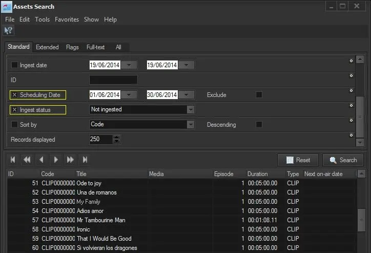 Ingest an existing asset - Instead, to search for an existing asset, just set various searching parameters, then, once you have found the asset make double click on it to go ahead: