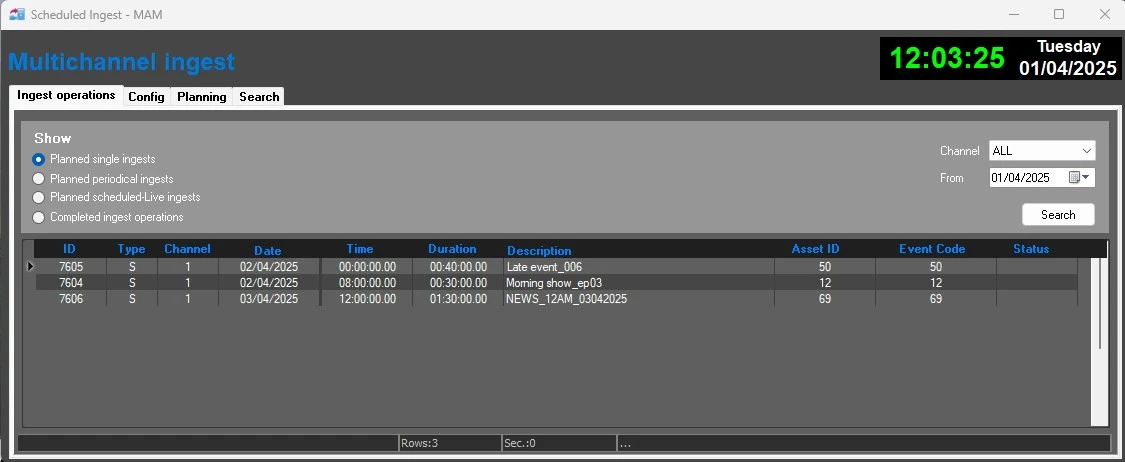 Moreover, by right-clicking over the main area it will be possible to create a new ingest operation, edit or delete a selected one.