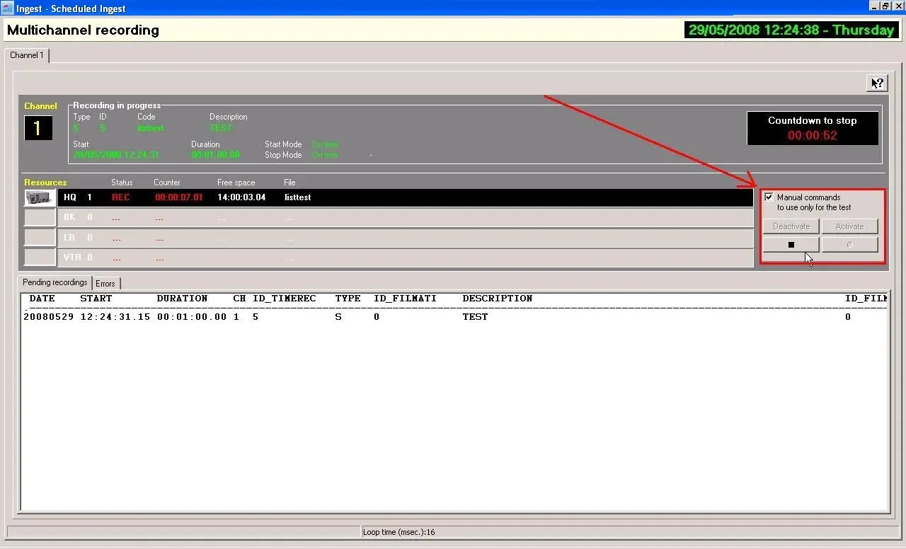 Manual ingest termination: In an emergency situation (change of request etc) the ingest process can be stopped manually by activating the manual command option.