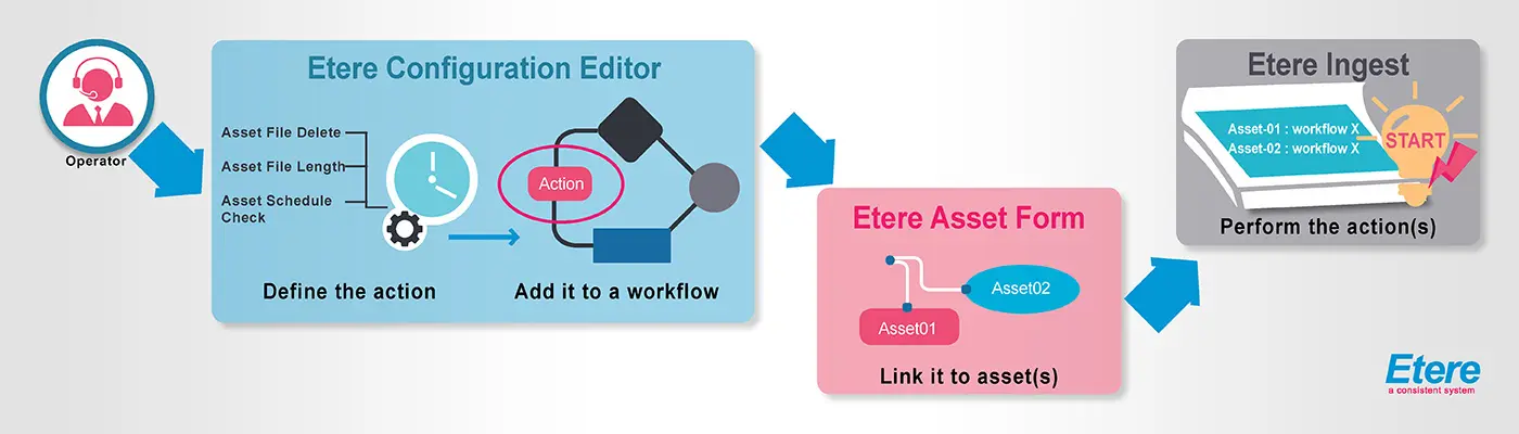 The Operations by Workflow module allows to either manually or automatically perform deletions, asset duration check and scheduled duration check of video files associated to certain assets attached to T-workflows based on these actions. It's here were they are confirmed and performed after have been launched from the relative asset forms, the figure below clearly illustrates how to perform this task: