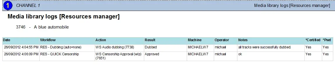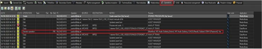 The Etere Reports > Media Library Operations [Resources Manager] report provides on all the worksheets executed for a certain asset: