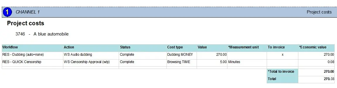 The Media Library > Resources management tab provides information on all the costs derived from the worksheets executed for a certain asset: