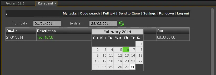 Once accessed, this section allows searching for a rundown (within a given date range) and loading (clicking on its description):