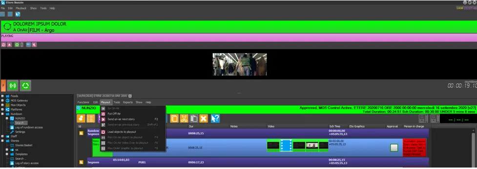 NB:The rundowns displayed in this section must be previously created and compiled in Etere Nunzio.