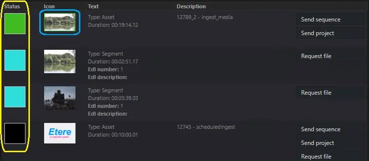 If the asset has also a lowres version of the media, the thumbnail will be countered in green.