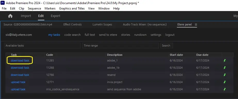 1.Select a task by clicking on its name (e.g. WS Download & Edit):