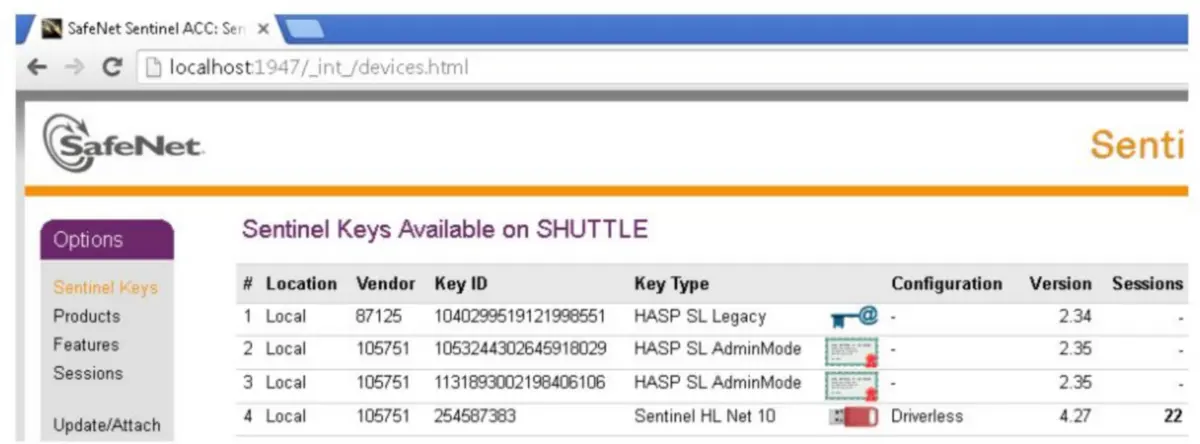 The Sentinel LDK License Manager by Aladdin/safenet/gemalto support access using