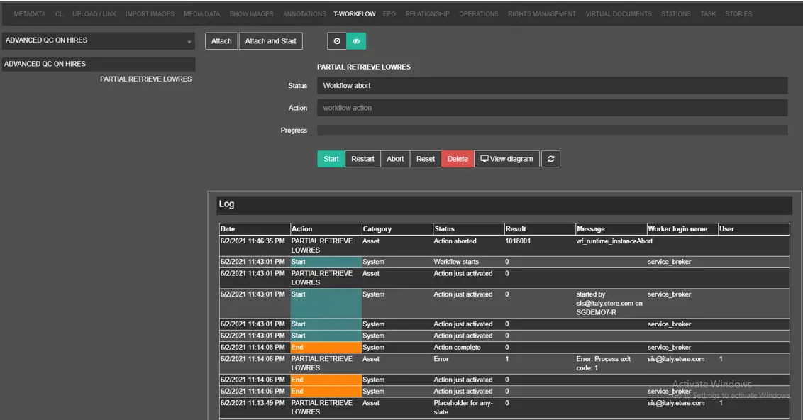 Etere Media Library allows to manage, for various selected assets, one or more T-workflows directly from the Search tab. In order to do this just select the asset(s) to be managed, right-click on them and select one of the following operations: