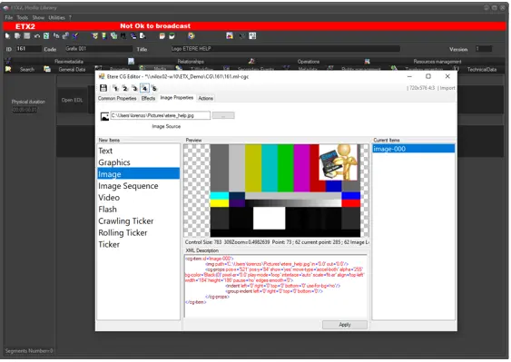 Note: When ETX-G is active in Automation, generator device such as Logo and CG are no longer in used. The graphics are managed by Etere’s STMan application, which require EA3213 License to be acquired.