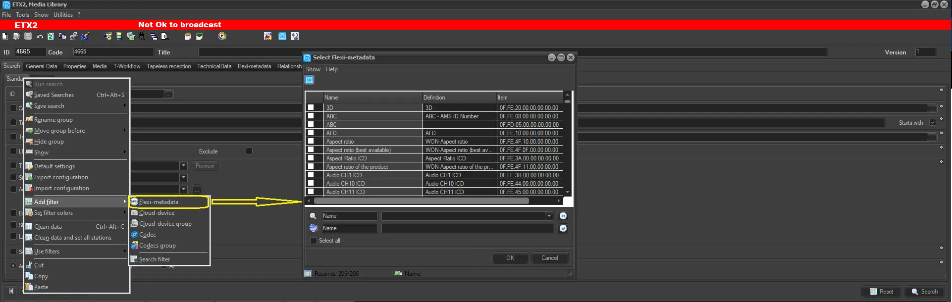2. Right-click on Standard tab and select Add filter > Flexi-metadata;