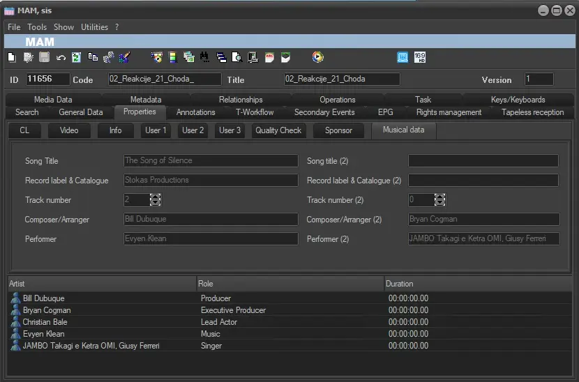 • Record label & Catalog: Specify the record label and the catalog with which the assets has been produced,