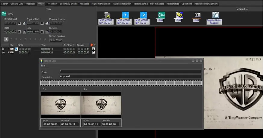 Show Picon List (F10): Shows the list of Picons (frame shots) of all EDL proxy segments: