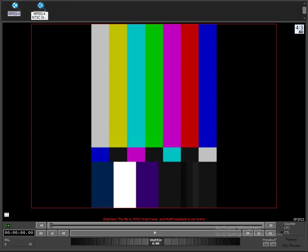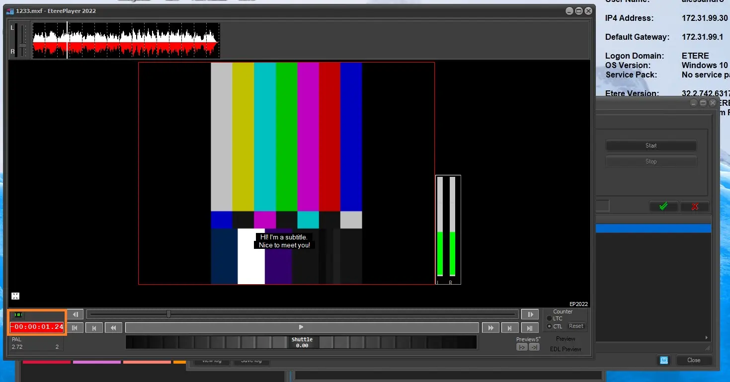 5. In case Multiframerate is disabled in Etere Configuration > Configuration Editor > System settings > Multiframerate and the user attempts to play a file with a framerate that is different from the station's one, a message will appear right above the trackbar, to warn the user that potential issues could arise during the play.