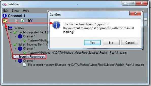 No - The user will be prompted to manually browse for the file to be imported for the selected subtitle language.