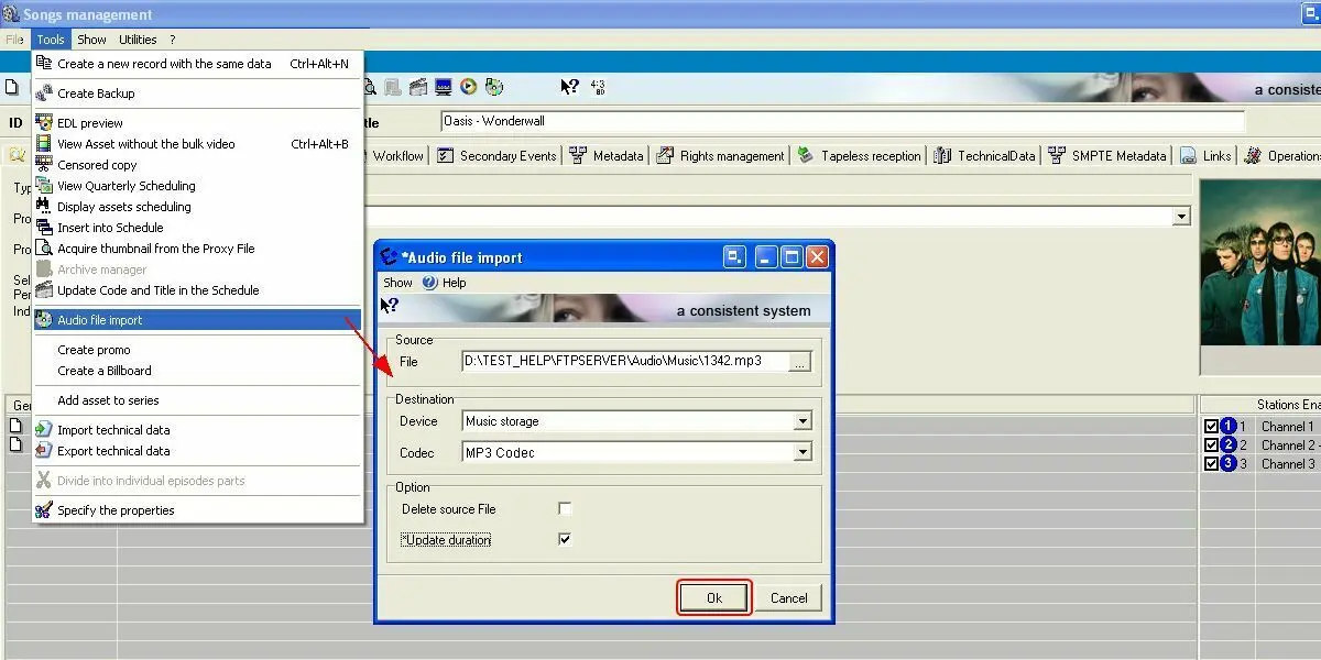 In order to import and audio file, the following parameters must be compiled: