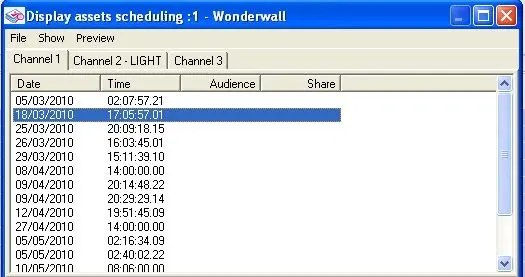 It allows you to see when the asset is scheduled, listing all the various scheduled times on the days in question. If scheduled across various stations, by selecting the appropriate tab you are able to visualize the scheduling across the various stations too: