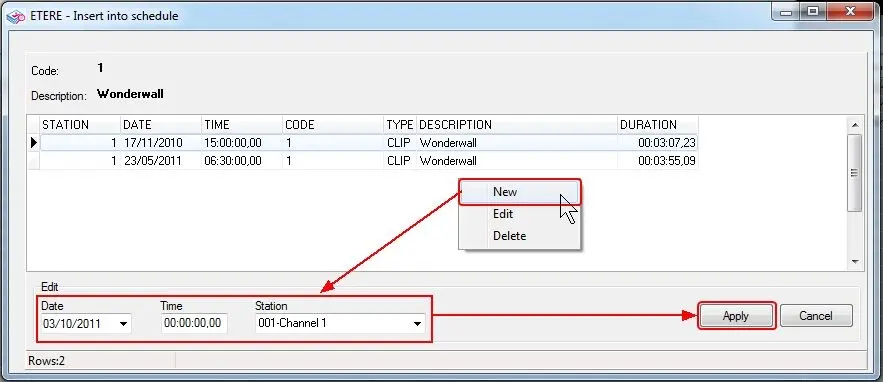NB: Please note that it is possible to create more insertions in case the asset is expected to be featured more than once on different days/times/stations just by repeating the previous steps.