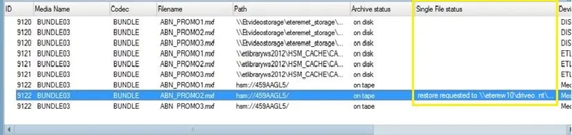 Description: Restores the file from the data tape (long-term archive) to the disk (short-term archive),
