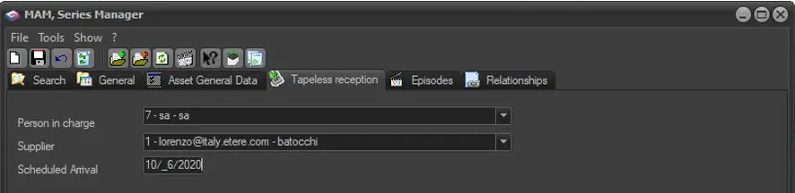 In case the season is expected to arrive soon through Etere Tapeless Reception (a web interface which allows external agencies to upload video files). The parameters used to fulfill this feature: