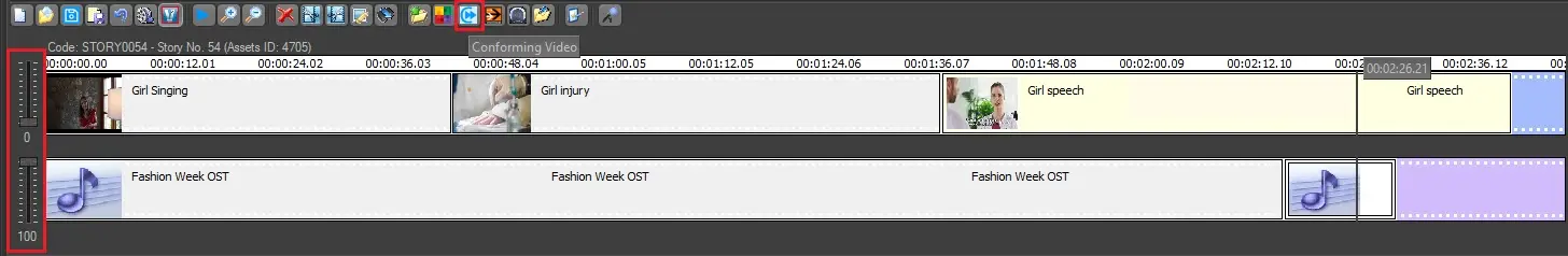 2. Press the [ Conforming] button from the toolbar, it will be created a new "asset" made up of a single media resulting from the conforming of all the media segments.
