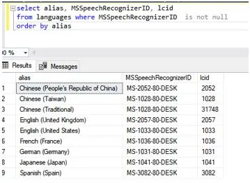 Upon updates, the “RecognizerID” for each available language would be listed in the Language view as shown in the screenshot below. The “RecognizerID” would be used to initialize the Speech Recognition Engine when the feature is activated.