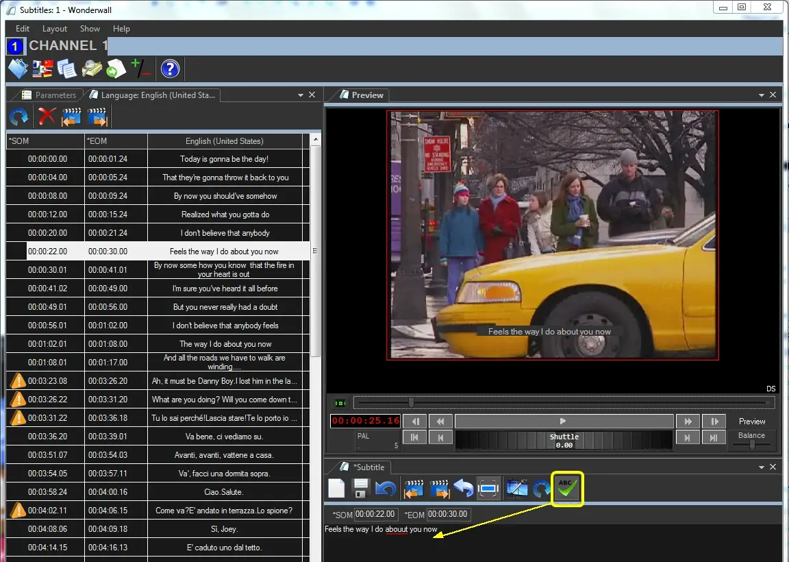 In case the selected language has a dictionary available for spell check, the [Spell check] button will be enabled to allow operators to check in real-time the correctness of entered subtitles.