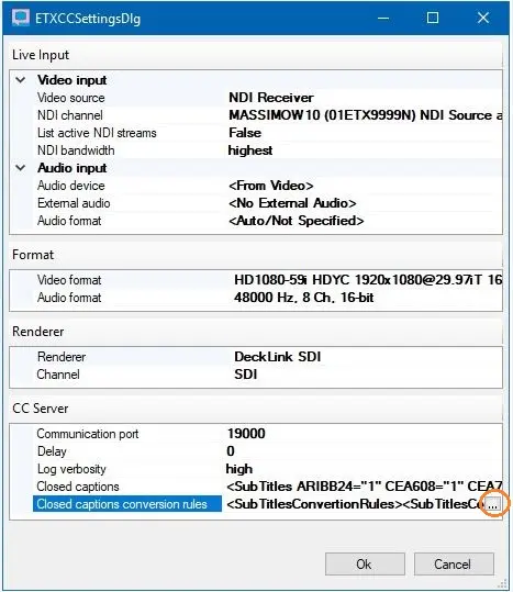 From the “Closed captions conversion rules” parameter, click the browse button to launch the conversion settings dialog.