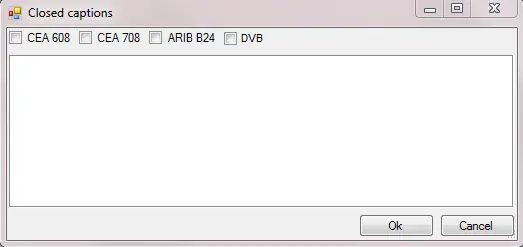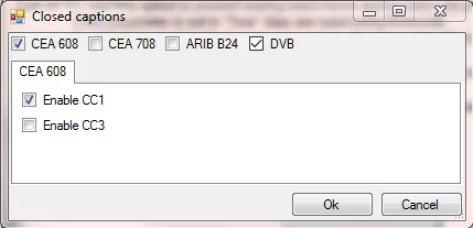 Next, click on the browse button of the “Closed Captions” parameter to open the Closed Captions dialog and view the available closed captions standards. Select one or more closed captions standards by click on the check-box beside the respective closed captions and configure the settings.