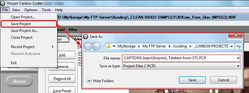 6. In order to use the ProMedia Carbon project via T-workflow, press the [Save Project] button to export the project template as a .PCP file: