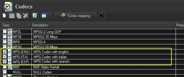 Codec - One codec will be created for each language (e.g. IMX 50 - Sub-ENG, IMX 50 - Sub-ITA, etc).