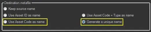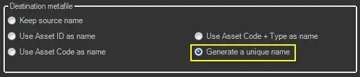 Filename - Filenames should be given using exclusively a generated unique name (e.g. 02BD000000000000014B), this, to allow storing into a metadevice multiple files related to a single asset: