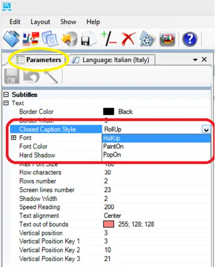 From the Parameter tab, select one of the closed caption style from the list to display the subtitles on-air: