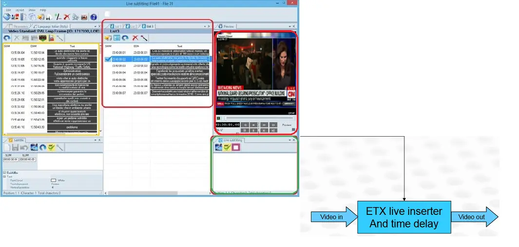 Etere Live Subtitling provides an interface to insert closed captions (subtitles) into clip and enable you to preview the closed captions, modify its positions, change closed captions color and font size before apply the closed captions.