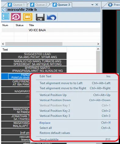 Function description : Select the Edit function or press the “Ins” (insert) shortcut key to edit the subtitles text, and press the “Ins” key again to update the changes to subtitles text. To abort the changes, press the “Esc” key.