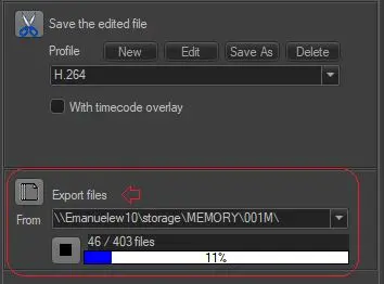Save the edited file - Launches a (background) process to create a new video file containing the video segment delimited by the SOM and EOM set values. User is required to provide the directory to save the file. The deafult filename format proposed by Etere Memory Browser consists of: