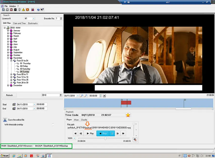 NB: Memory files generated before Etere version 28.2 would had local time (date and time) indicated in filename (e.g. MEM001M-20180912-162159B.mp4), the date and time in filename has been changed to UTC time (e.g. MEM001M-20180912Z142159B.mp4) from Etere version 28.2 onwards, where the local time is hours ahead of UTC time depending on time zone. When preview Memory files, the Preview Browser would read both files (Local time and UTC time) and load the correct file for preview.