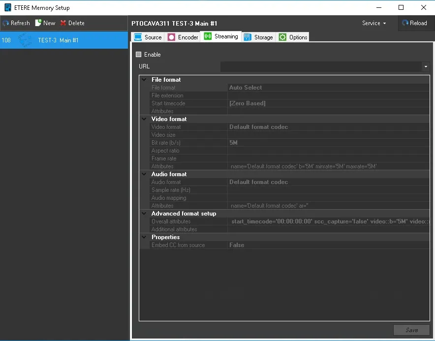 Properties: allow to select various secondary settings like he possibility to capture CC (Closed Captions) from source.