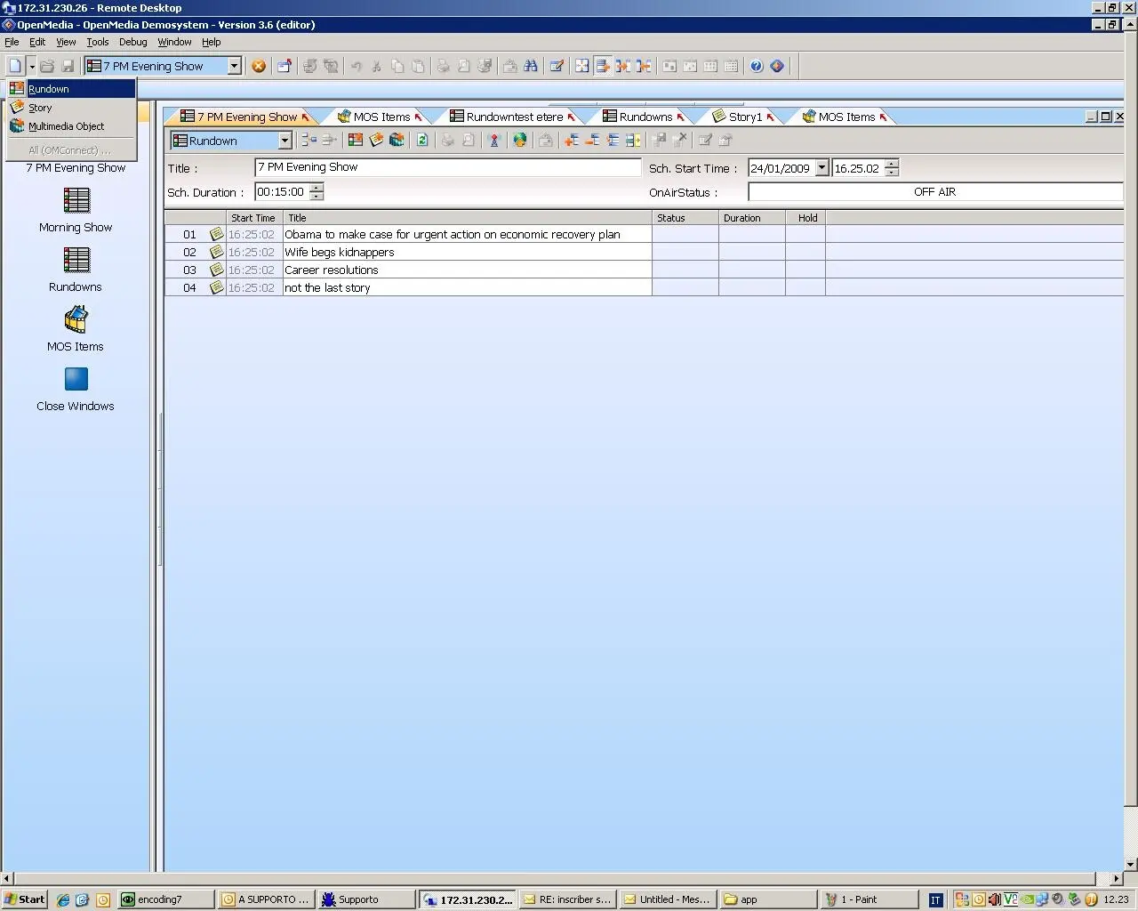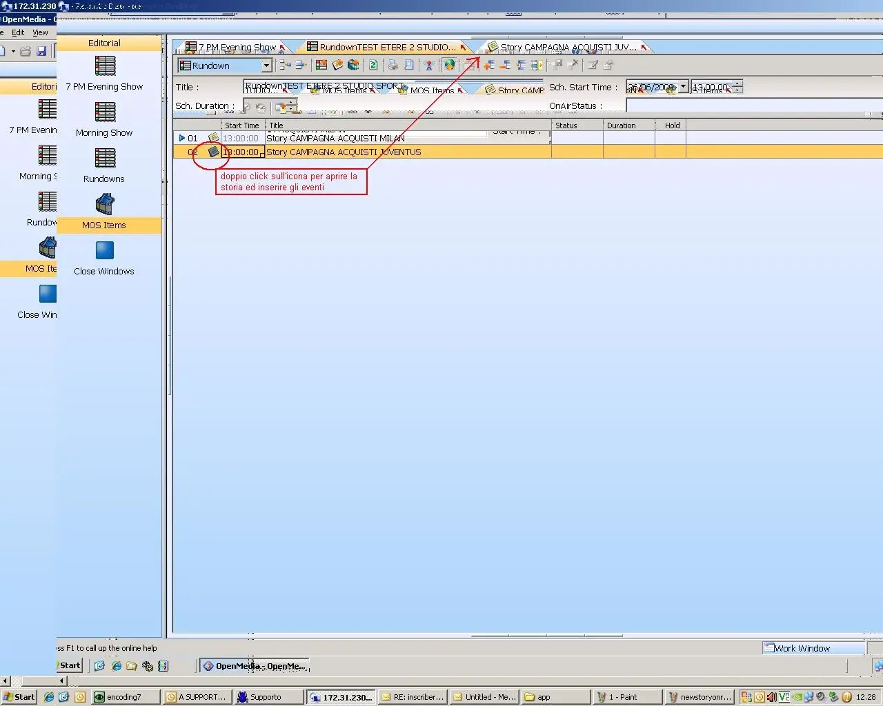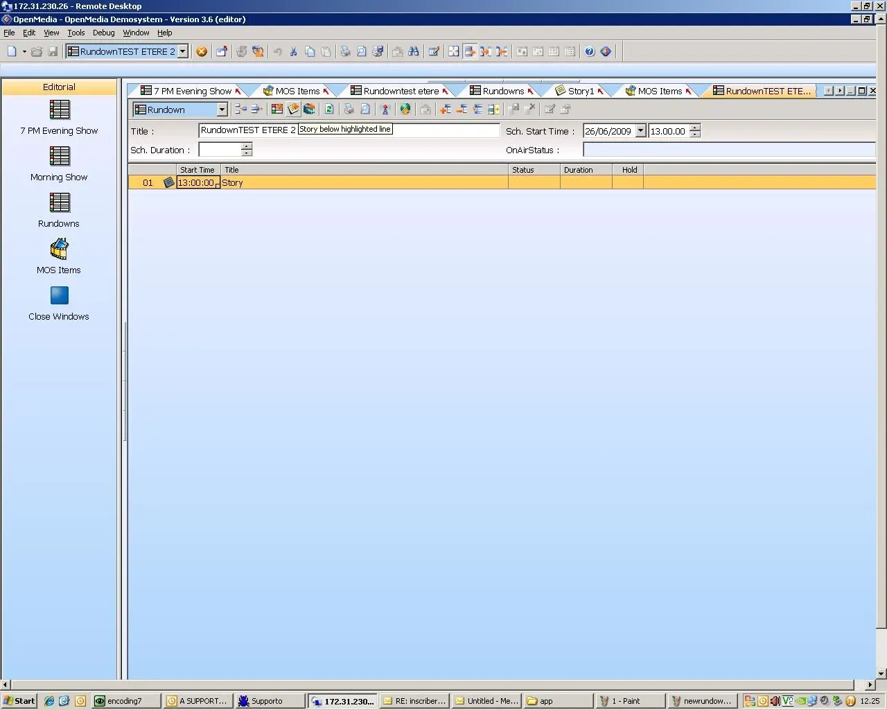 3. Once the rundown is created, to create the story, make click on the 'story below highlighted line' icon